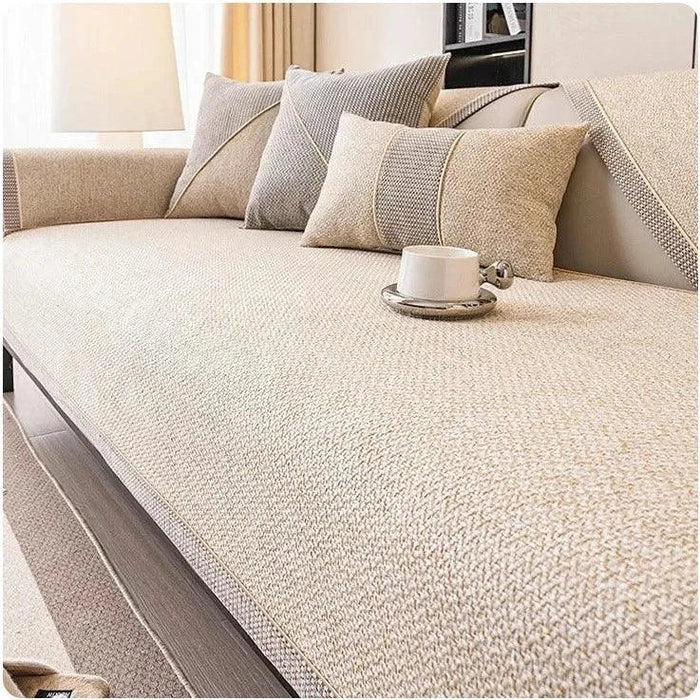 Estilo e Elegância: Capa de Sofá Bege Claro em Algodão e Linho – Antiderrapante